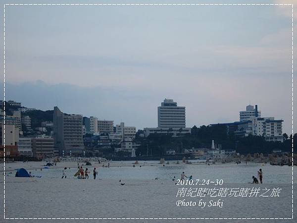 本來到了民宿放好行李後,是想去看有百大夕陽排行之一的「圓月島」,無奈民宿主人說這一趟去,說不了得花上40-50分鐘,而稍後就是晚餐時間了,沒辦法等我們回來再用餐;因此只好退而求其次,先到附近的白良濱海灘去走走。